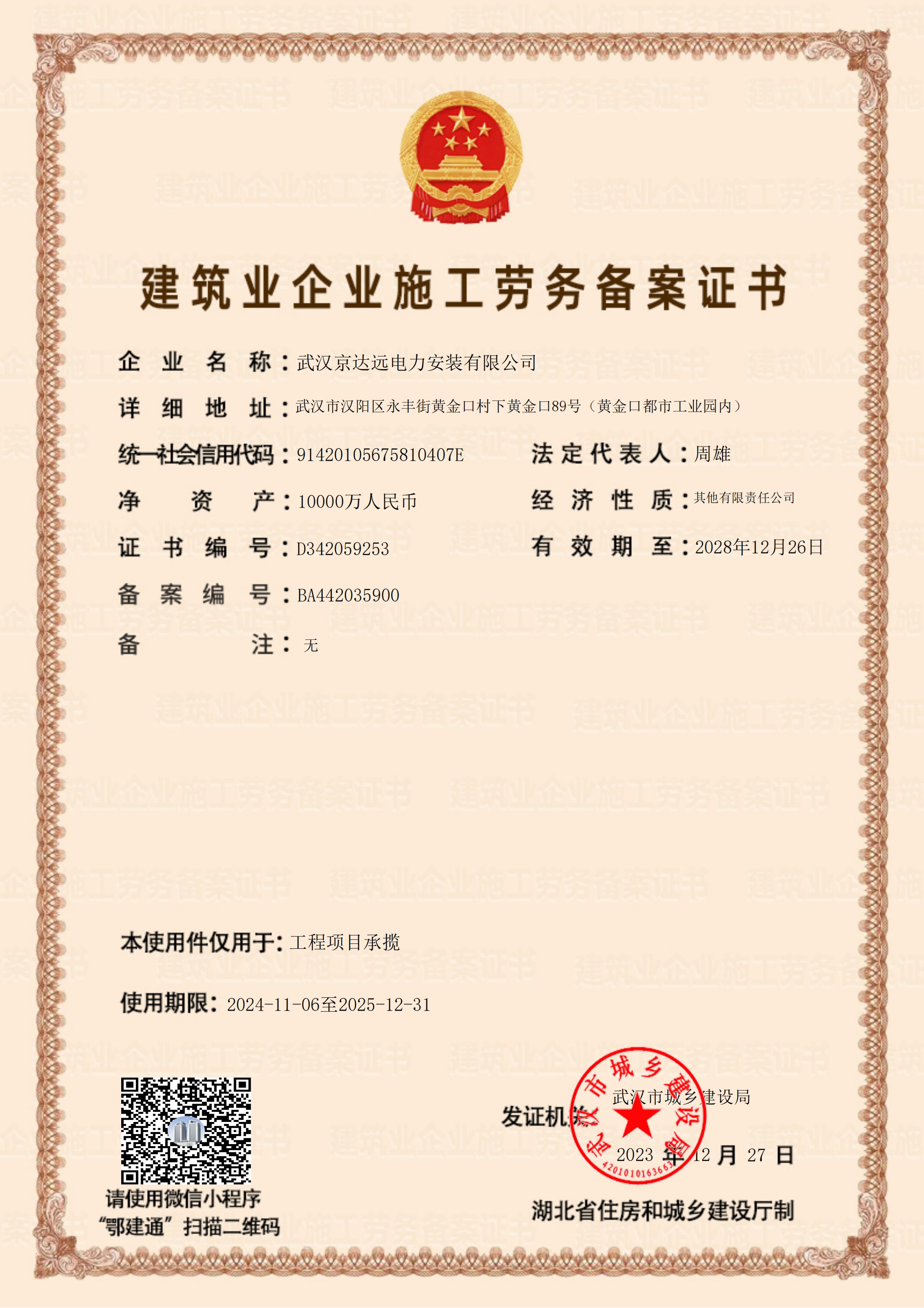 京達遠施工勞務資質(zhì)